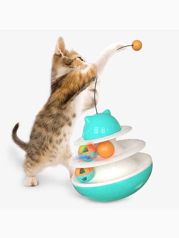 Our patented tumbler-style cat toy combines multiple play features for ultimate feline engagement. The weighted base maintains upright positioning during play, while the dual-layer rotating tracks challenge cats' hunting instincts.