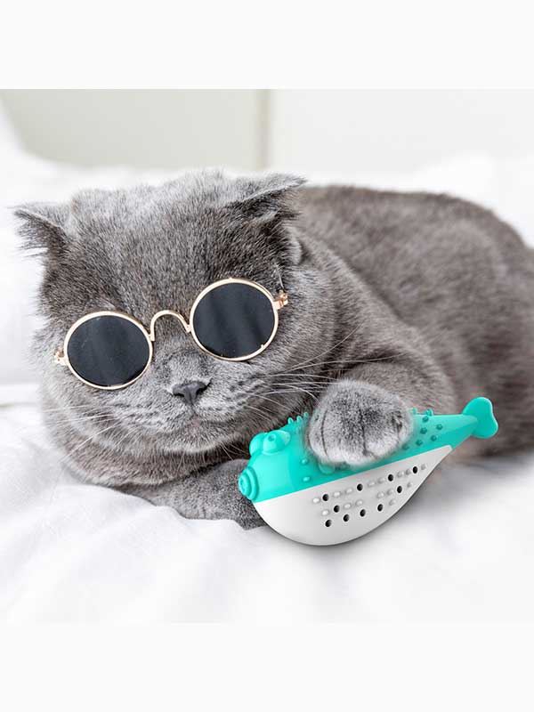 Wholeslae Pufferfish Cat Dental Toy with Catnip, Bell & TPR Teething Bumps